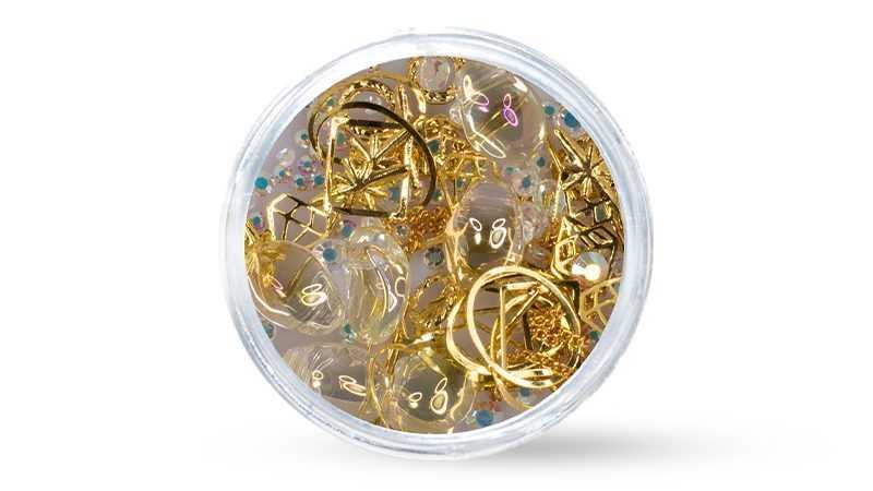 U online trgovini Juliana Nails izbor se kreće od zlatnih i srebrnih šljokičastih ukrasa za nokte, šljokičastih nail art umetaka (inlays) pa sve do raznih ukrasnih dodataka vašim noktima.