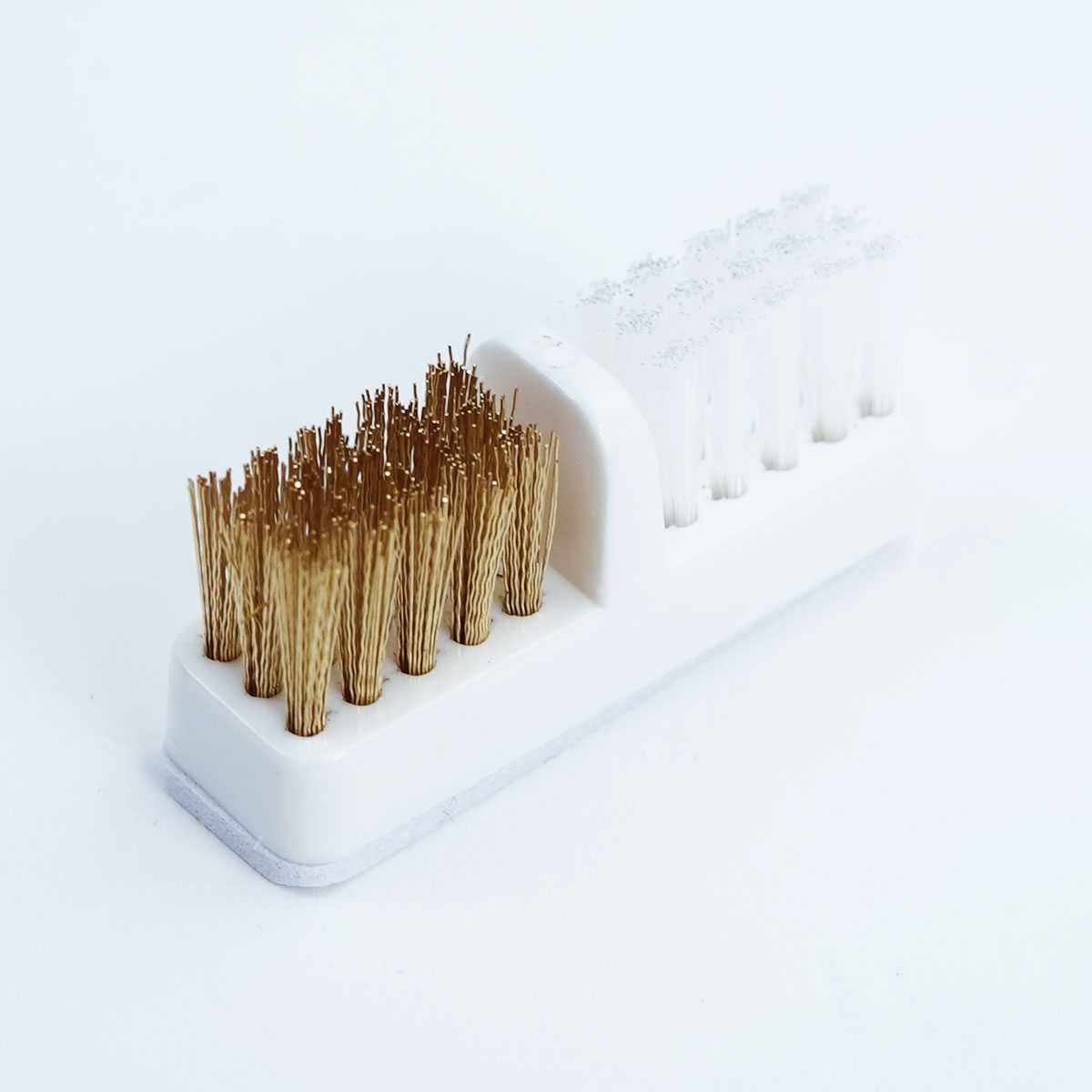 Nakon grubog čišćenja mesinganom četkicom, najlonska strana osigurava završni sjaj. Služi za fino čišćenje i stoga je idealna za fine dijamantne nastavke. Nježnije najlonske čekinje čiste nježno, temeljito i pouzdano.