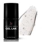 Naš Gel Lak Alpine Storm je mliječno sivo-smeđe nijanse s crnim pahuljicama – moderan, oštar i apsolutno elegantan.