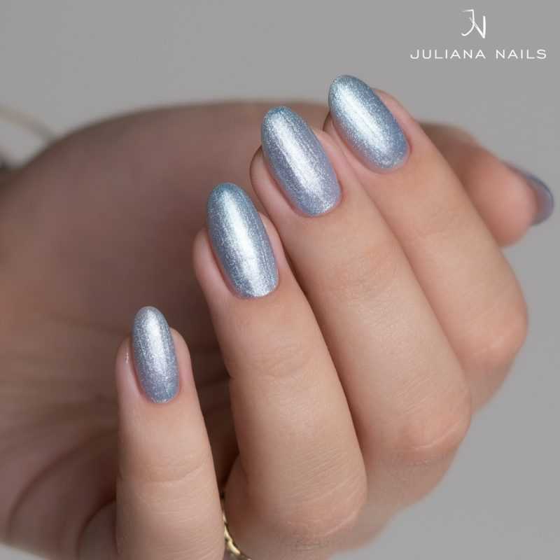 Naš Gel Lak Cat Eye Icebreaker je jarke, prozirno plave nijanse s nježnim svjetlucavim pigmentima.