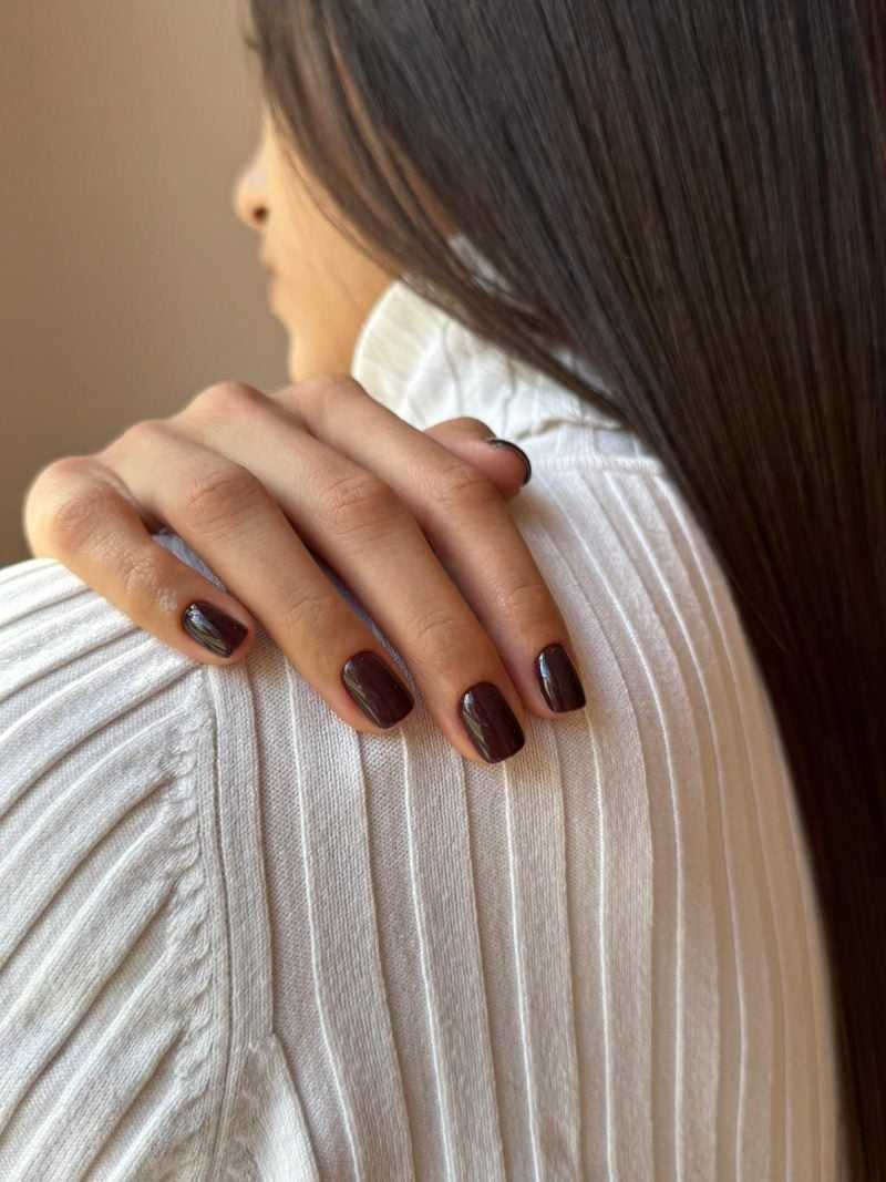 Naš Gel lak Marble Trace je tamnosmeđe boje s ljubičastim podtonom, tajanstven i moderan u isto vrijeme.
