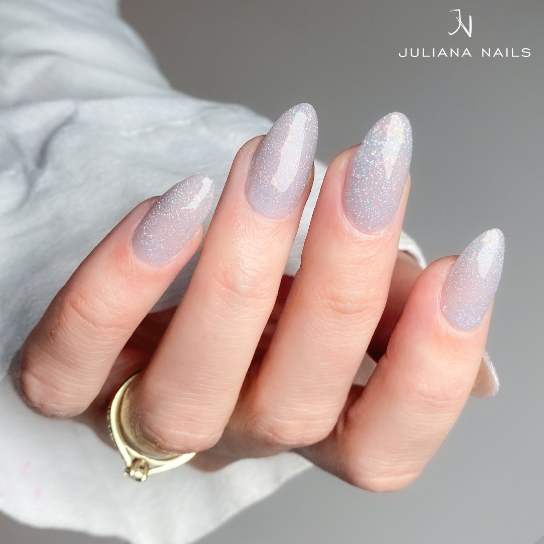 Naš Gel Lak Reflective Glitter Daybreak je nježne svijetloplave nijanse sa srebrnim šljokicama i šarenim pahuljicama – nježan, ženstven i ledeno prekrasan. Čestice šljokica intenzivno svjetlucaju i na sunčevoj i na umjetnoj svjetlosti.