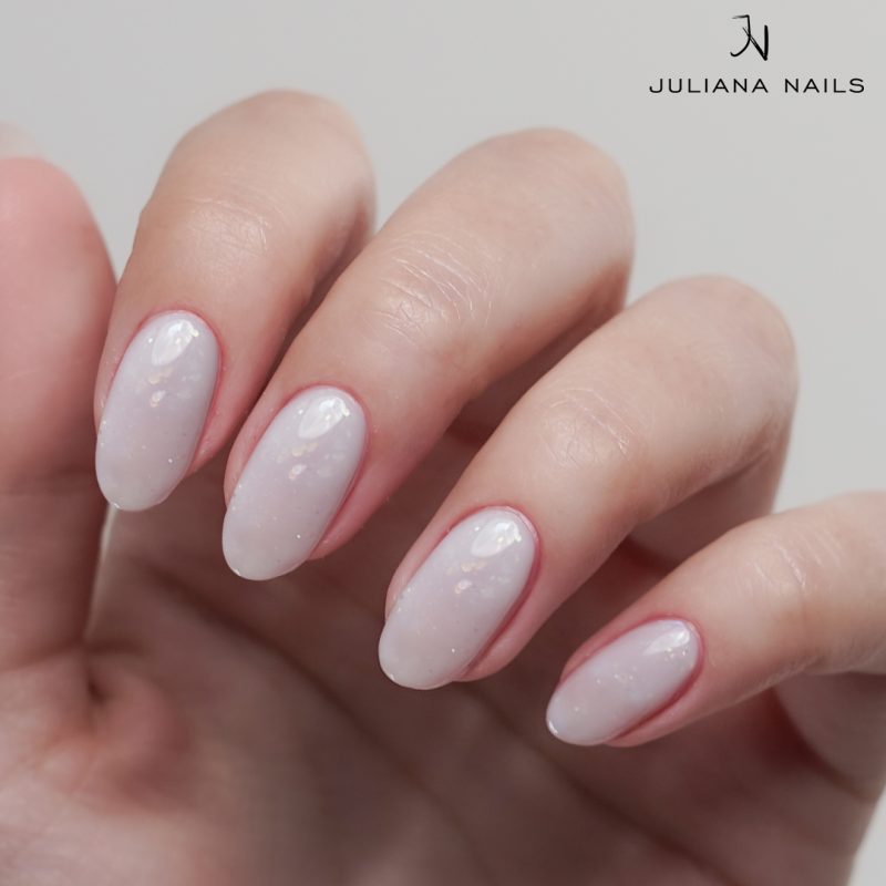 Naš Gel Lack 4 YOU Minimal Muse je nježne, mliječno bijele boje sa šarenim šljokicama – minimalistička, ali s blistava.
