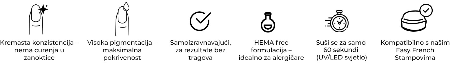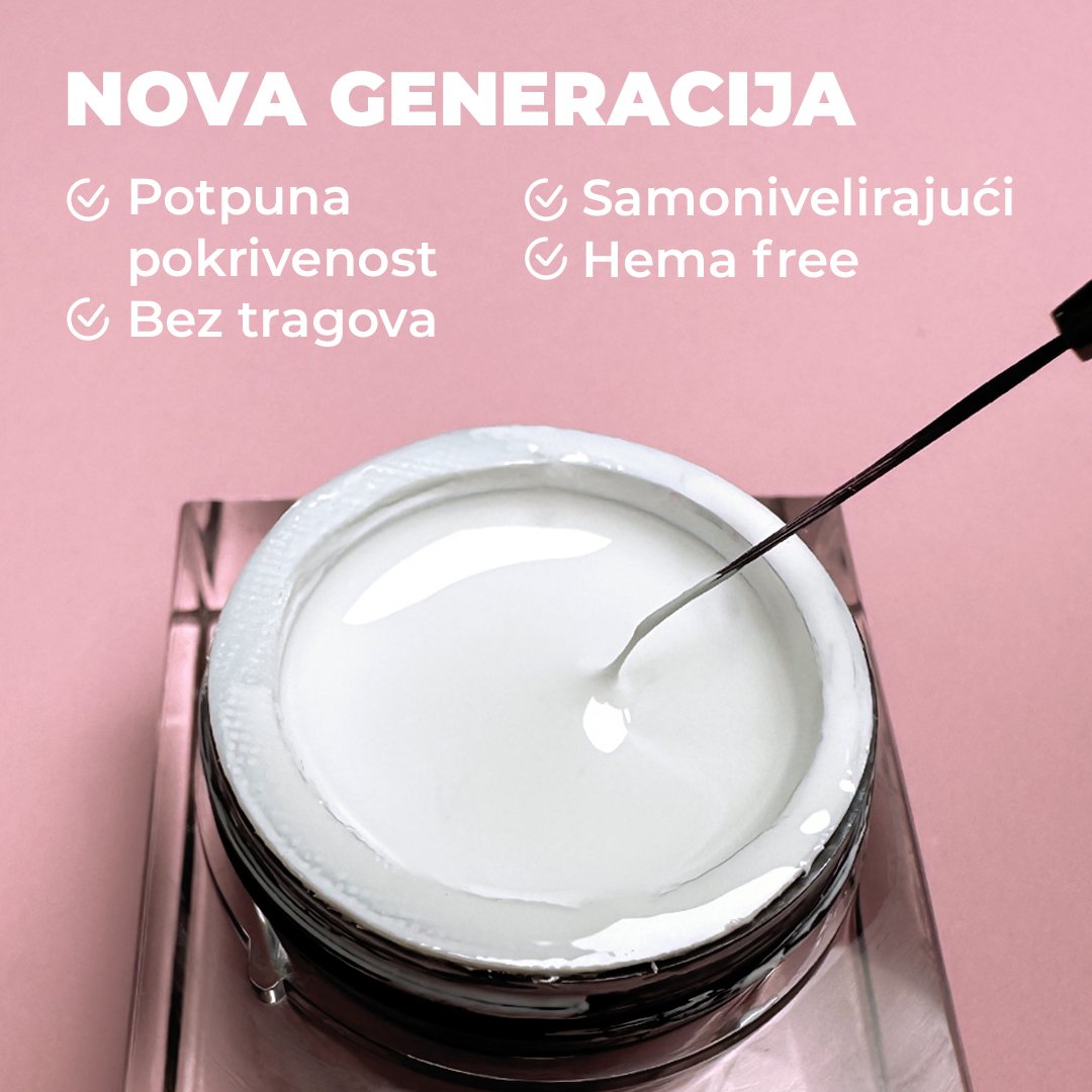 Naš French Gel Next objedinjuje sve što biste mogli poželjeti: mekanu, kremastu konzistenciju, savršenu pkrivenost i blagu HEMA-free formulaciju! Samoizravnavajuća formula osigurava da se gel samostalno zaglađuje, dajući vam apsolutno rezultate bez tragova. Jedva da ćete trebati dotjerivati, a svoju smile line možete izvesti čisto, precizno i bez ikakvog curenja. Ovaj gel je must-have za sve koji vole french nokte i žele još brže doći do savršenog rezultata.