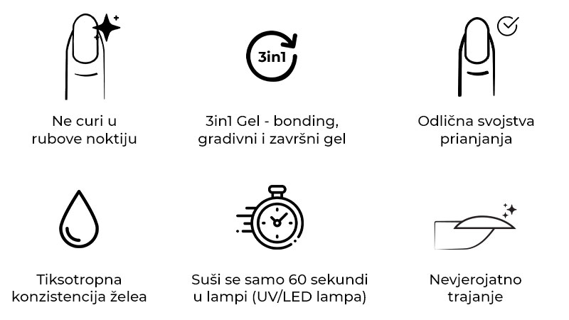 Naši Jelly Allround gelovi savršeni su za sve kraljice koje žele stabilne UV gelove. Zahvaljujući svojoj tiksotropnoj teksturi, osiguravaju vam dovoljno vremena za modeliranje nokta i ne cure u rubove. Lako se obrađuju i ugodni su za korištenje.