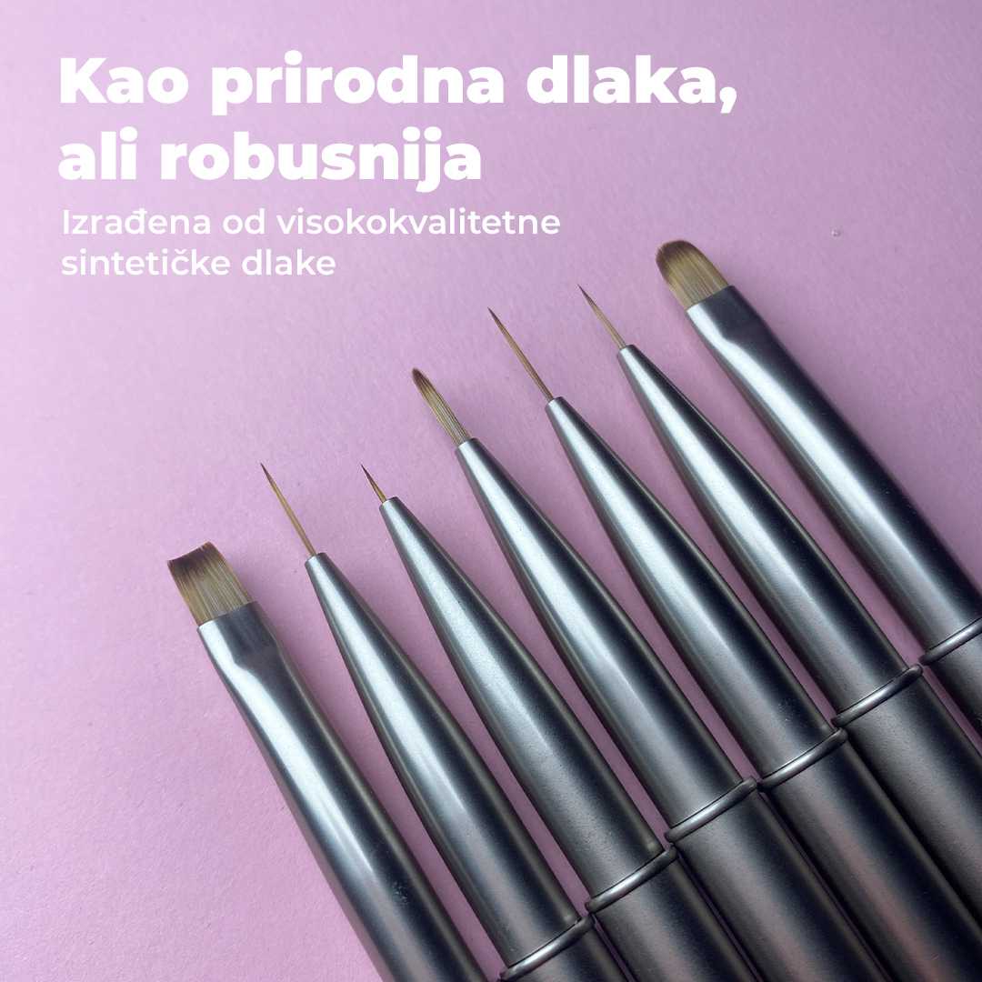 Ovdje ćete pronaći savršen alat za svaki korak: tanke kistove u različitim duljinama za precizan nail art i čiste linije, gel kistove za nanošenje i oblikovanje te okrugli kist za iznimno precizan rad.