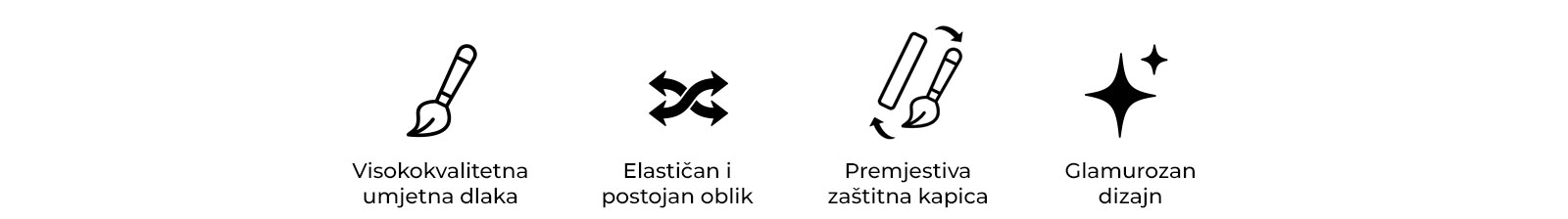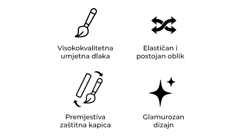 Ovi kistovi izrađeni su od posebne, visokokvalitetne umjetne dlake koja ima najbolje osobine prirodne dlake. Međutim, oni su znatno izdržljiviji od osjetljive prirodne dlake. Elastični su i postojani u obliku. Ali najbolje od svega je: savršeni vrh kista osigurava apsolutno precizne rezultate.