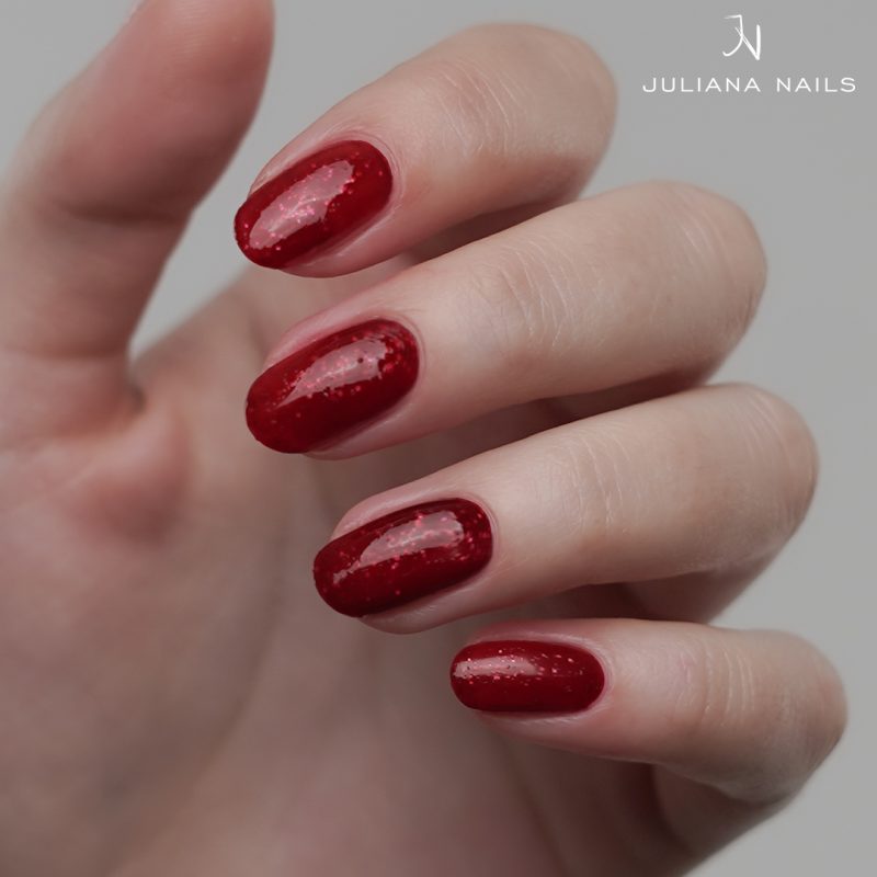 Naš Say Stay! Lak za nokte – Record Romance je srednje crvene nijanse s blistavim šljokicama za glamurozan izgled.