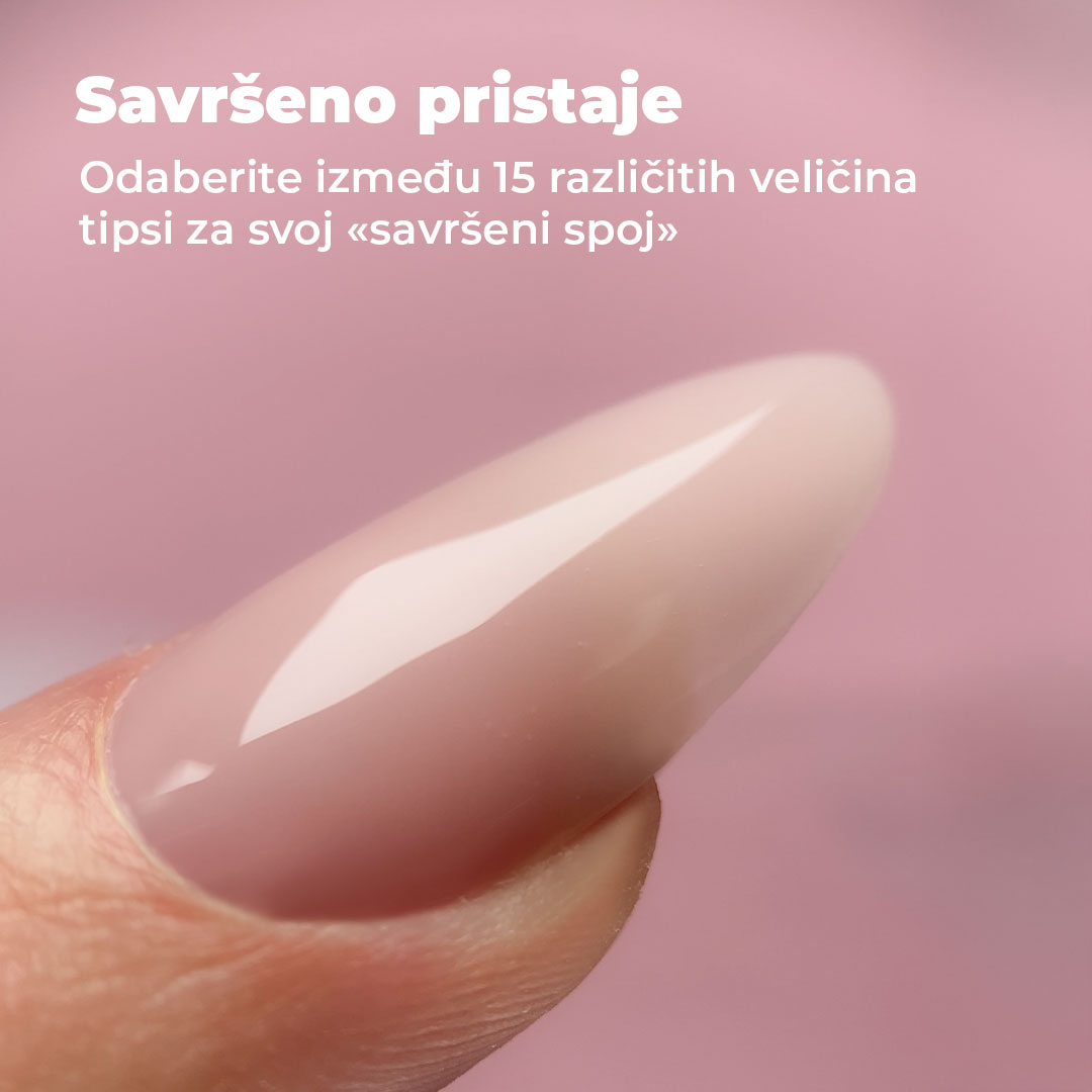 - Tipsa je previše ravna ili previše zakrivljena? Nije svaki oblik Dual Tipsi prikladan za svaki prirodni nokat. Za ravnu ploču nokta, nemojte birati Dual Tips s jakom zakrivljenošću.