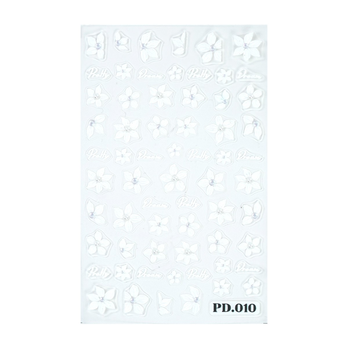 5D naljepnice za nokte – Flower Bowl 1 sadrže bijele 3D cvjetove s biserima. Dočaravaju suptilan i elegantan izgled na vašim noktima.