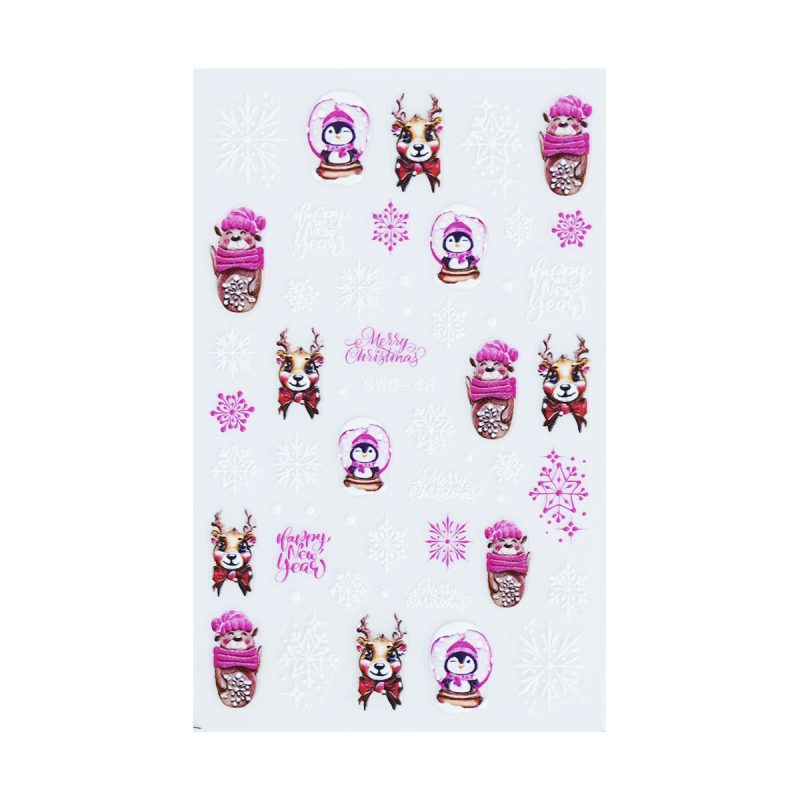 5D Nail Stickers – Sweet Christmas 2 sadrže slatke božićne motive u ružičastoj i bijeloj boji. Dobivate pingvine, sobove, pahuljice i tekst.