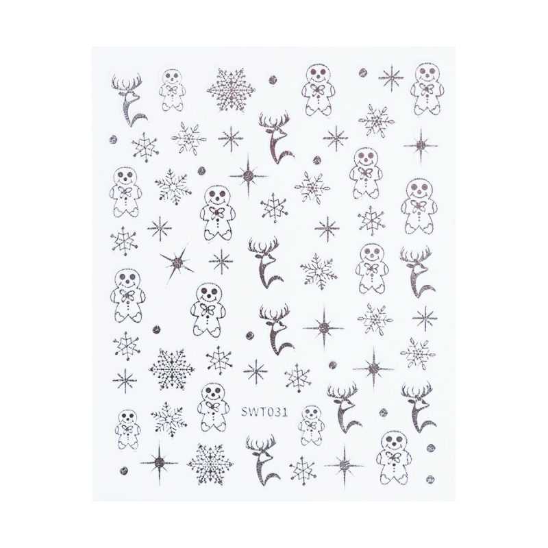 Nail Sticker – X-Mas Mood 8 sadrže slatke božićne dizajne u metalik srebru. Ovdje dobivate sobove, medenjake i snježne pahulje.