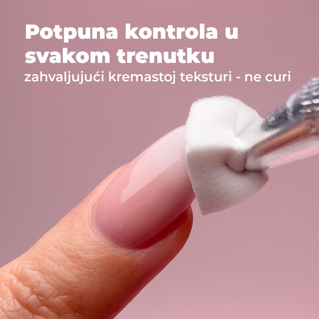 Zahvaljujući gušćoj, kremastoj teksturi, ombre gel ostaje točno tamo gdje ga naneseš. Bez razlijevanja! Imaš potpunu kontrolu pri blendanju, pa možeš raditi opušteno i bez stresa sve dok prijelaz boja ne izgleda savršeno.