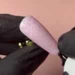 Postavite foliju licem prema dolje na nokat i čvrsto je pritisnite gumenim vrhom dvostruke pincete za nail art ili silikonskim alatom.