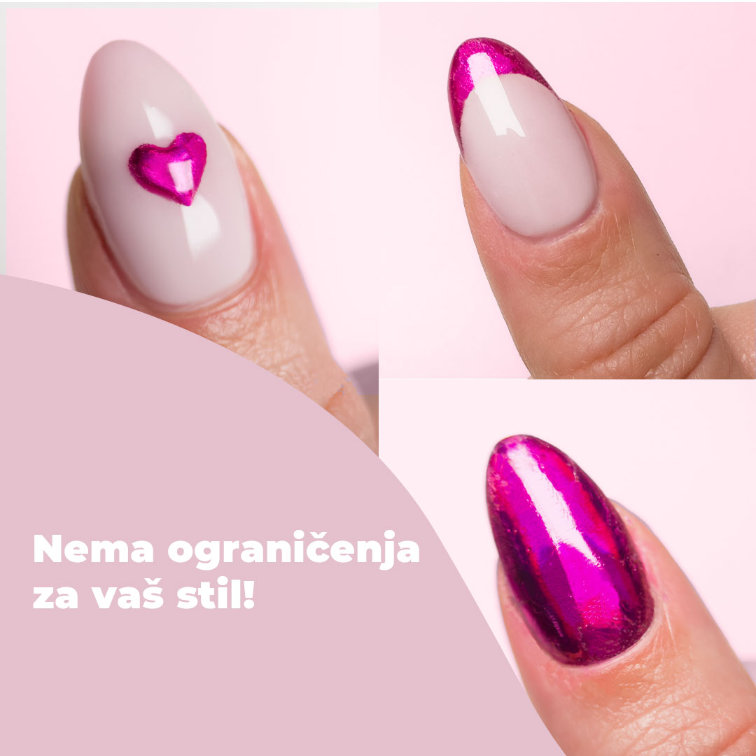 Transferne folije nude iznimnu fleksibilnost. Možete ih koristiti na cijelom noktu, kao detalje na vrhovima ili čak kao dekorativne naglaske u dizajnu.