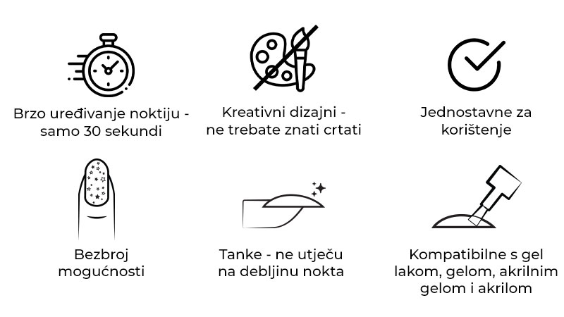 Naše transferne folije su ultra tanke, tako da neće utjecati na debljinu vašeg nokta.