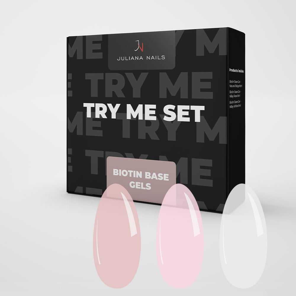 Savršeno za isprobavanje, uspoređivanje i zaljubljivanje! Upravo to su naši Try Me setovi! S ovim probnim setovima dobivate 3 različita UV gela ili BIAB gelove po nenadmašnoj cijeni! Zašto kraljice noktiju vole Try Me Set – Biotin Base Gels: